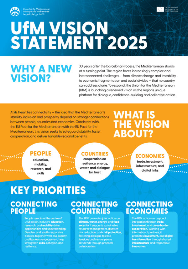 5-9 June 2017, New York – The Secretariat of the Union for the Mediterranean (UfMS) will participate through a video message to a side event on Marine Litter on the occasion of the OCEAN CONFERENCE organised by the United Nations in New York from the 5th to the 9th of June 2017. The session will be held on June 8 from 11:00 AM to 12:30 PM at the UN… إقرأ المزيد