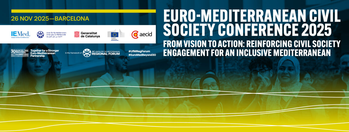 26 November 2025, Barcelona. Marking 30 years of the Barcelona Process, the Euro-Mediterranean Civil Society Conference 2025 will bring together over 100 regional and institutional representatives to reinforce civil society’s role in shaping an inclusive and sustainable Mediterranean. Against the backdrop of pressing regional challenges, including climate risks, social justice, and economic integration, the event will launch an ongoing dialogue to transform shared insights into lasting cooperation, advancing people-centred governance, institutional collaboration, and long-term sustainability for a Mediterranean built not just for its people, but with them.